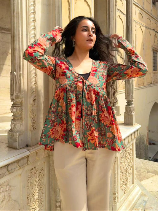 Aisha Floral Shrug-Hand Block Print