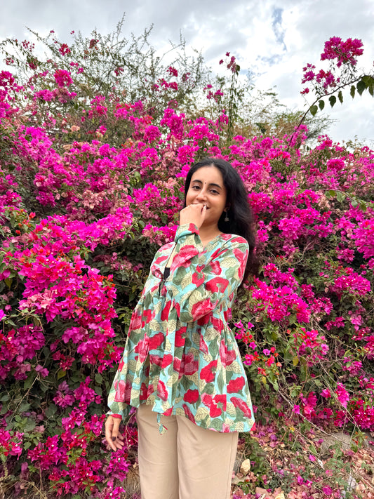 Aasmani Baagh Hand Block Top(Bestseller)