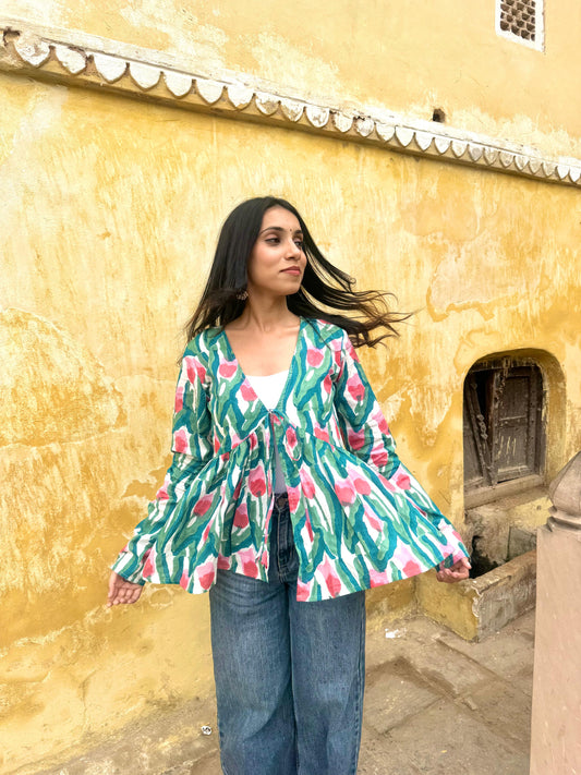 Tulip Summer Shrug-Hand Block Print