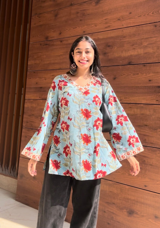 Gulmohar Short Kurti (Hand-Block Print)