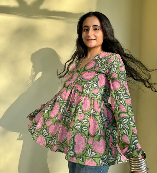 Pink Bloom Top (Hand-Block Print)