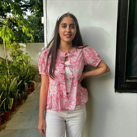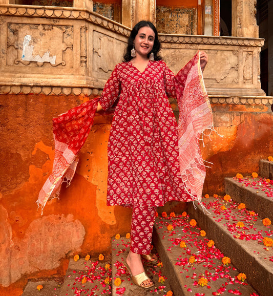 Samara Red Buti Short Kurti (HAND-BLOCK PRINT)