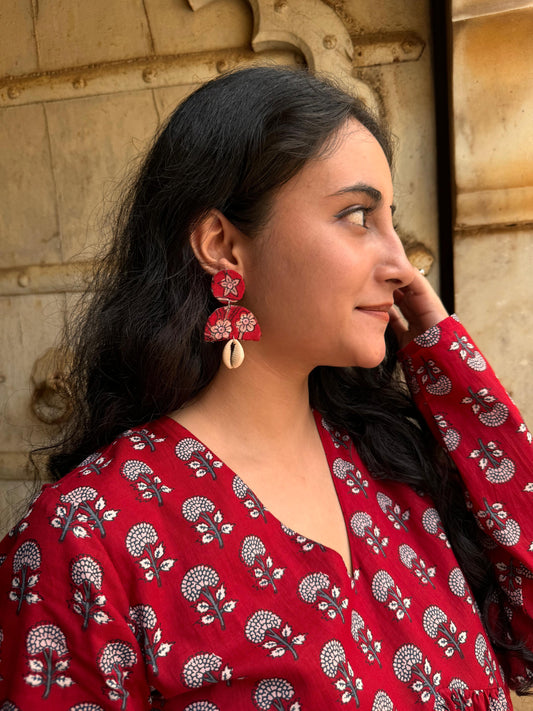 Samara Red Buti Short Kurti (HAND-BLOCK PRINT)