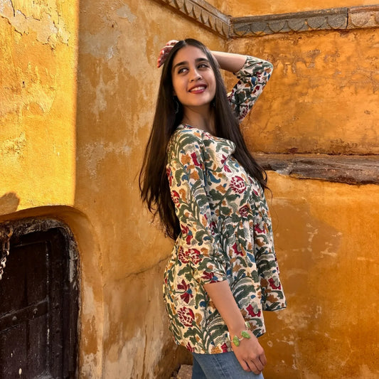 Aasmani Baagh Hand Block Kurti (Bestseller)